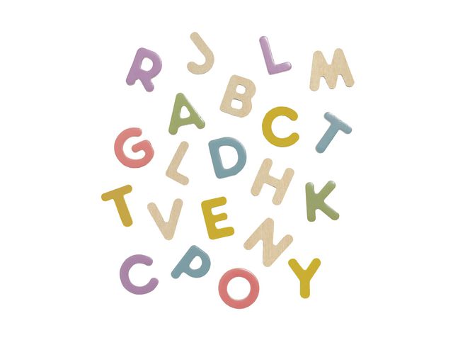 Dessa lekfulla magnetbokstäver från Micki kommer i blandade, härliga färger och mönster, är gjorda av trä och fäster lätt på magnetiska ytor.