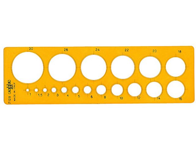 Rita konsekvent runda former på papper, kort och tyg med den här praktiska cirkelmallen från Arda. Den här mallen är tillverkad av tålig gul plast och är idealisk för daglig användning. Den här cirkelmallen från Arda, som passar perfekt för pedagogiska miljöer, har 18 former som är från 1 till 30 mm stora.