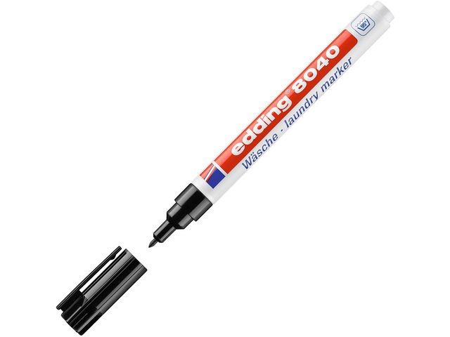 Märkpennan Edding 8040 är tvätt- och vattenbeständig och kan användas för att skriva på nästan alla textilier upp till 95 °C.