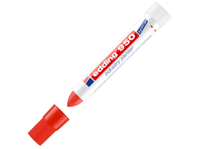 Den här Edding 950 Industry Painter-pennan innehåller en förstklassig permanent färgkräm och kan användas för att skriva på alla typer av ojämna och orena ytor.