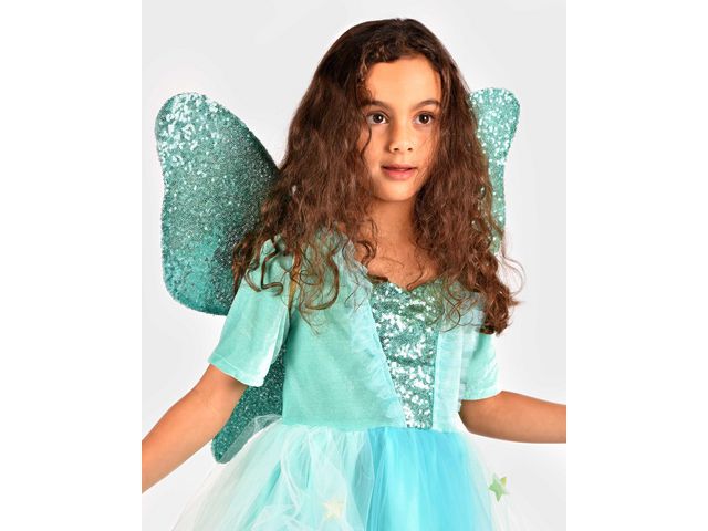 Med tre olika stilar att välja mellan finns det variation för varje äventyr. Den första är elegant i krossad sammet med glittrande guldtryck och band. Den andra är full av glam och glans med paljetter och gnistrande axelband. Den tredje är som en regnbåge på himlen med sina färgglada toner och satinbeklädda axelband. För en fulländad utstyrsel, välj din favorit bland trollstavarna dekorerade med paljetter och fjädrar, perfekta för att ge det där magiska touchen till varje lekstund.
