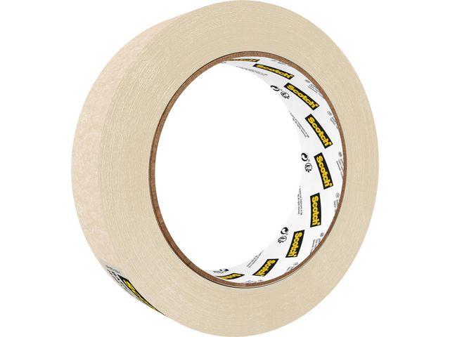 Scotch® Basic maskeringstejp är en beige maskeringstejp för oömma ytor. Tejpen är enkel att riva av för hand. Den lämnar inga häftämnesrester om den tas bort inom 1 dag efter applicering.
