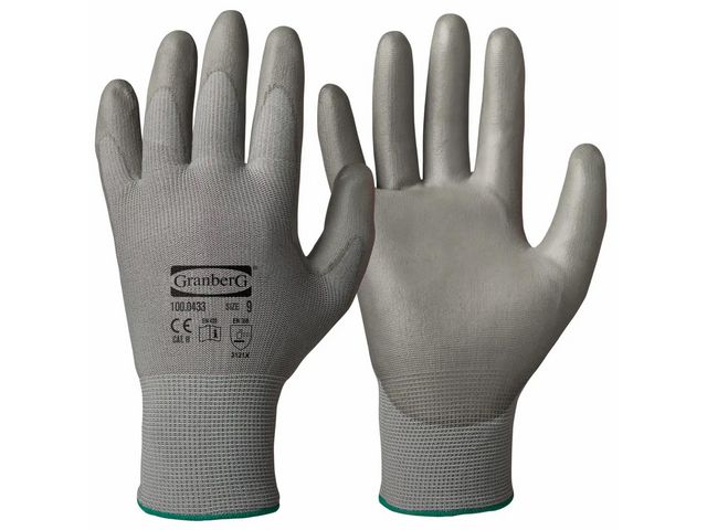 Sömlösa handskar i polyester med beläggning av polyuretan i innerhanden. Idealiska för precisionsarbete då de har mycket god fingerkänsla och en bra slitstyrka, trots den lätta känslan på handen. Produkten är CE-märkt.