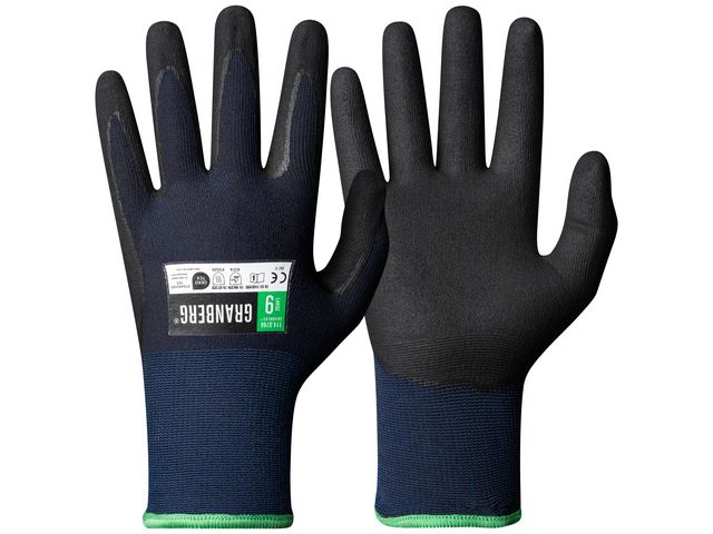Montagehandskar Powerfit by Granberg med extra tunn nylonväv (18 gauge) och sandig nitrilskumsbeläggning. Med ett enastående torr-, våt- och oljegrepp och en utmärkt slitstyrka, samtidigt som du får den optimala fingerkänslan.