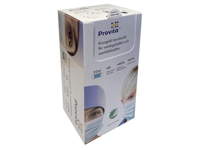 Ett 3-lagers Typ IIR munskydd som primärt används till vård och omsorg.
