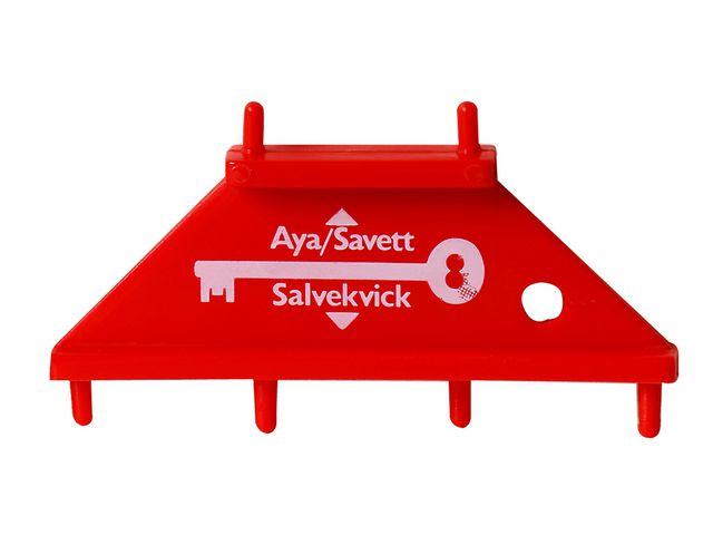 Specialnyckel för att lossa tomma refiller i Salvequick Plåsterautomat och Savett Sårtvättaratomat. Produkten är CE-märkt.