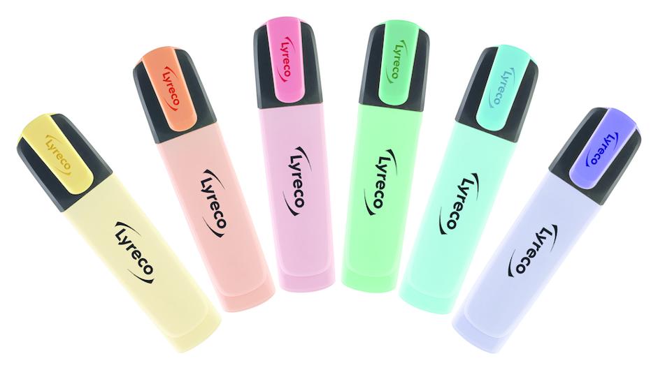 Finns i 5 färger med transparent bläck som framhäver text. Mejselspets 2–5 mm för både fin och bred markering. Passar alla papper.