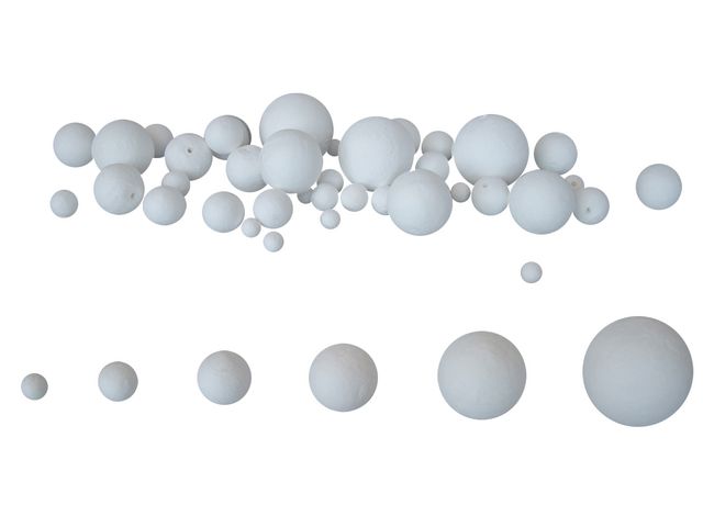 Papperskulor i olika storlekar. 50 st av storlekarna 12, 18 , 25 och 30 mm. 25 st av storlekar 40 och 50 mm. Tillverkade av bomull med hål så du enkelt kan trä en tråd genom.