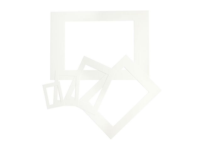Vit passepartoutram set om 25 st. Ramar urstansade ur vit kartong. Varje ark ger en ram A3, A4, A5, A6 och A7. 5 st x 5 storlekar.
