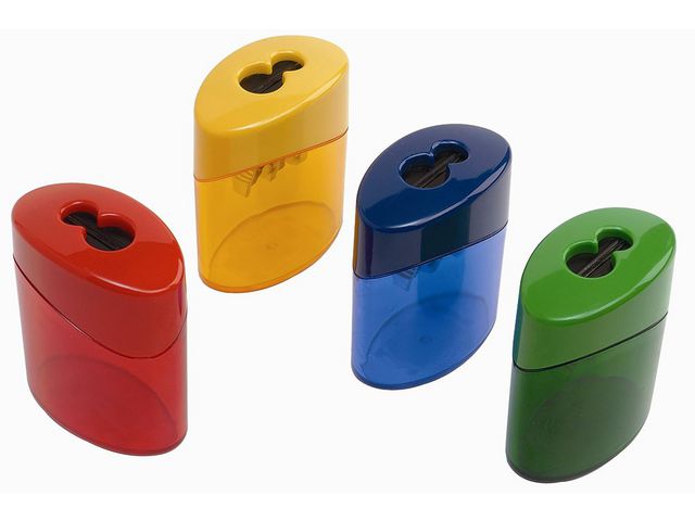 Extra stor, dubbel behållarvässare till blyertspennor på upp till 11 mm Ø. Automatisk låsmekanism.