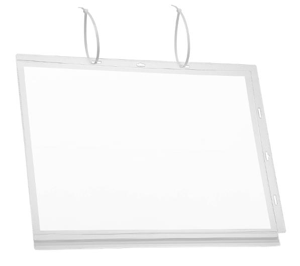 Skydda dokument och information även i krävande miljöer med väderbeständig plastficka. Den vattentäta förslutningen håller papper torra vid regn, fukt och smuts, medan möjligheten att fästa den med buntband gör den enkel att montera på stänger, staket eller maskiner.