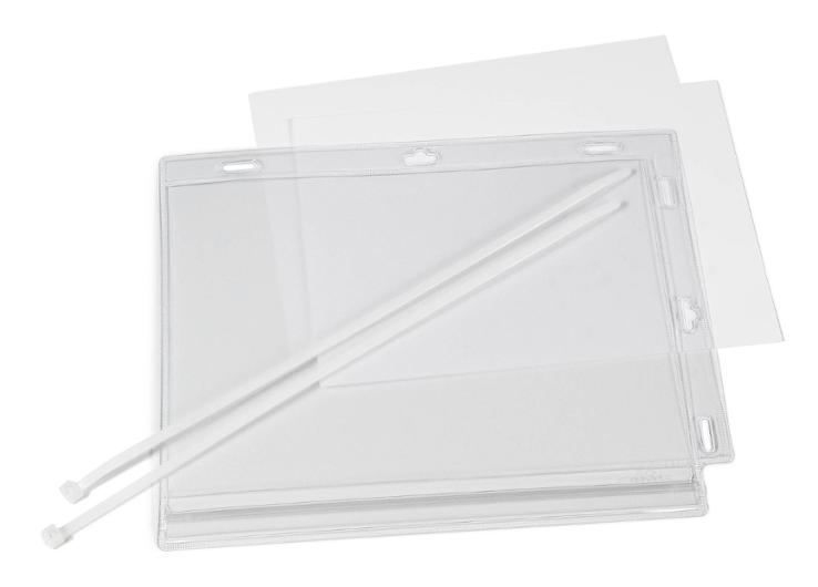 Skydda dokument och information även i krävande miljöer med väderbeständig plastficka. Den vattentäta förslutningen håller papper torra vid regn, fukt och smuts, medan möjligheten att fästa den med buntband gör den enkel att montera på stänger, staket eller maskiner.