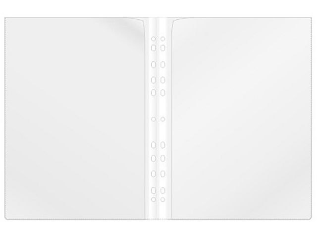 Dubbla plastfickor i formen av ett omslag i A4-format i transparent 0,17 PP-plast. Vit, förstärkt rygg med universalhålning.