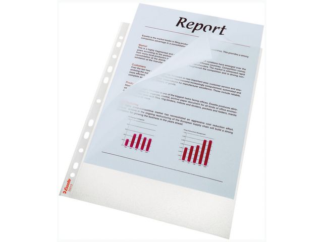 Lägg i viktiga dokument i dessa dokumentskydd från Esselte för att skydda dem mot damm och dagligt slitage. Dessa robusta fickor i polypropylen, som är lätta att rengöra, är helt genomskinliga för enkel visning. Dessa dokumentskydd från Esselte är helt återvinningsbara och perfekta för miljömedvetna kontor.