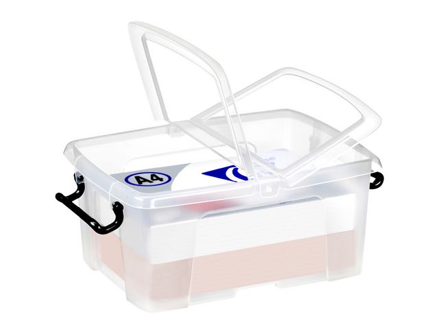 Den smarta förvaringslådan CEP Strata HW671 har en kapacitet på 12 liter(295x405x183mm). Den är idealisk för förvaring och arkivering av massor av dokument eller andra föremål som böcker, cd-skivor och mycket mer. Förvaringslådan, som tillverkad av slitstark polypropylen och har fasta handtagsklämmor för säker förslutning, ger innehållet ett effektivt skydd mot damm och fukt. Sidorna är robusta och stadiga, vilket gör att det är en utomordentlig stadig låda. Helt avtagbart lock som snäpps fast på lådans mitt och öppnas åt sidorna för att det ska vara enkelt att lägga i och ta ur saker. Lådans böjda kant gör att den är lätt att hålla i och transportera. Den här mångsidiga lådan är stapelbar, vilket gör att den optimerar utrymmet. Den vinklade funktionen gör det enkelt att placera flera lådor i varandra. Du behöver inte längre leta efter en bra lösning för dina lagringsbehov – den här smarta förvaringslådan har allt du behöver.