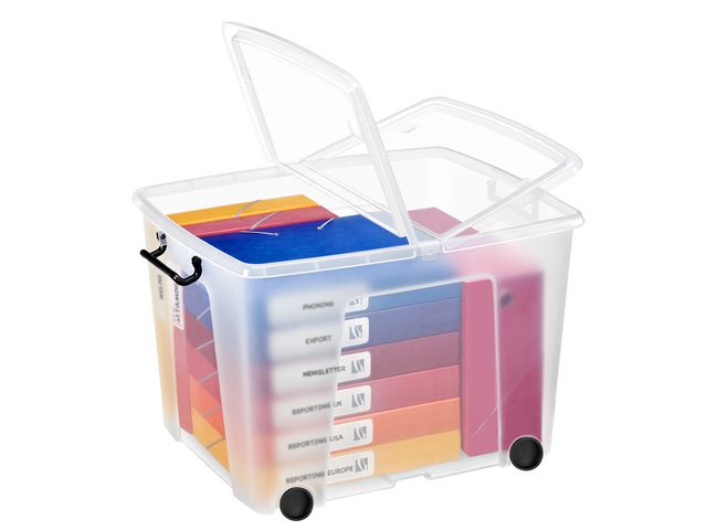 Den smarta förvaringslådan CEP Strata HW676 har en kapacitet på 75 liter(485x600x410mm). Den är idealisk för förvaring eller transport av massor av dokument eller andra föremål som böcker, cd-skivor och mycket mer. Förvaringslådan, som tillverkad av slitstark polypropylen och har fasta handtagsklämmor för säker förslutning, ger innehållet ett effektivt skydd mot damm och fukt. Sidorna är robusta och stadiga, vilket gör att det är en utomordentlig stadig låda. Helt avtagbart lock som snäpps fast på lådans mitt och öppnas åt sidorna för att det ska vara enkelt att lägga i och ta ur saker. Lådans böjda kant gör att den är lätt att hålla i och transportera. Den här multifunktionella förvaringslådan är lätt att stapla och vilket möjliggör optimering av utrymme. Du behöver inte längre leta efter en bra lösning för dina lagringsbehov – den här smarta förvaringslådan har allt du behöver.