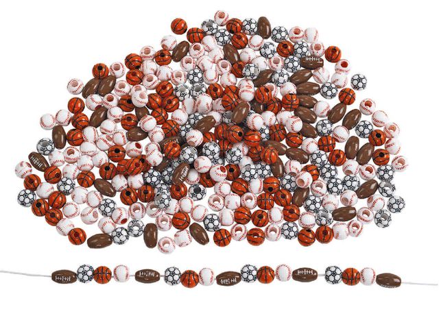 Praktisk blisterpåse som innehåller ca 300 plastpärlor, 227 g. Sportpärlor så som basebollar, basketbollar, fotbollar. Setet kommer i återförslutbar plastpåse för enkel förvaring. Sportbollpärlor är en utmärkt för att skapa unika tillbehör som nyckelringar, nyckelband, smycken och mycket mer. Att pärla främjar hand-öga-koordination och finmotorik. Pärlor kan användas för att sortera och matcha spel för barn. Pärlor främjar individualitet, självuttryck och kreativt uttryck
