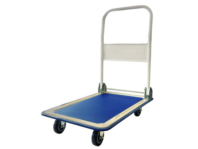 Du kan enkelt transportera skrymmande paket från en plats till en annan genom att använda den här Twinco-plattformstrucken som har ett stort däck och ergonomiskt handtag. Däckets yta är tillverkad av vinyl för att förhindra att kartonger glider och har gummikanter för att undvika skadliga kollisioner. Denna plattformstruck med fyra hjul är hopfällbar och kan fällas ihop till en kompakt storlek för praktisk förvaring.