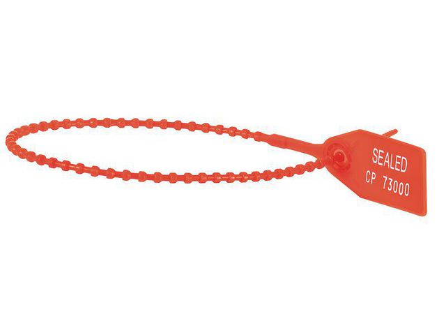 Indikativa plomber (genomdragsplomber) med ett tunt plastband som lätt dras sönder vid behov.
