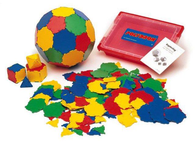 Denna förpackning innehåller tillräckligt Polydron för en hel klass. Totalt 184 delar med 100 liksidiga trianglar, 20 hexagoner, 40 kvadrater och 24 pentagoner.