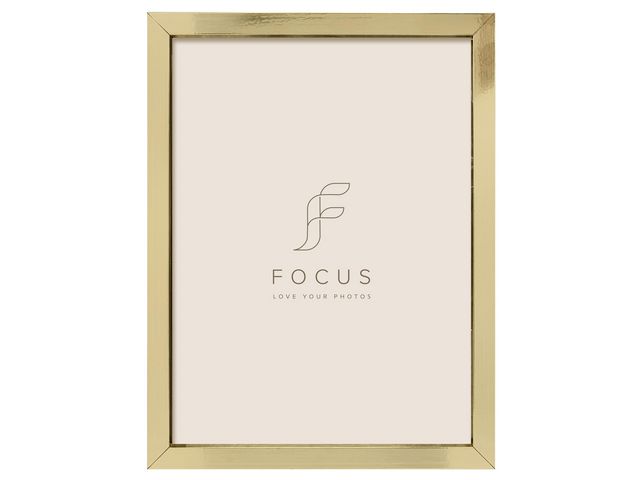 Klassisk ram tillverkad i guldfärgad plast. Profilstorleken är 13x13 mm och ramen har en modern rak profil. Den kan både hängas på vägg och ställas på bord på traditionellt sätt.