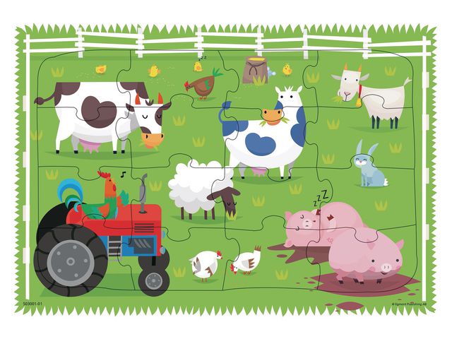 Ett roligt rampussel som passar de minsta. Låt barnen lära sig om djuren på bondgården med stora bitar för enklare placering av pusselbiten. Lägg hästen, kaninen, fåren och kavlarna på rätt plats! Dessutom kan man med hjälp av en vuxen lära sig vilka de olika djuren är.