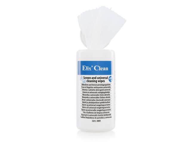 Förfuktade universella rengöringsservetter för rengöring av skärm, datorhöljen, tangentbord, skrivbord etc.
