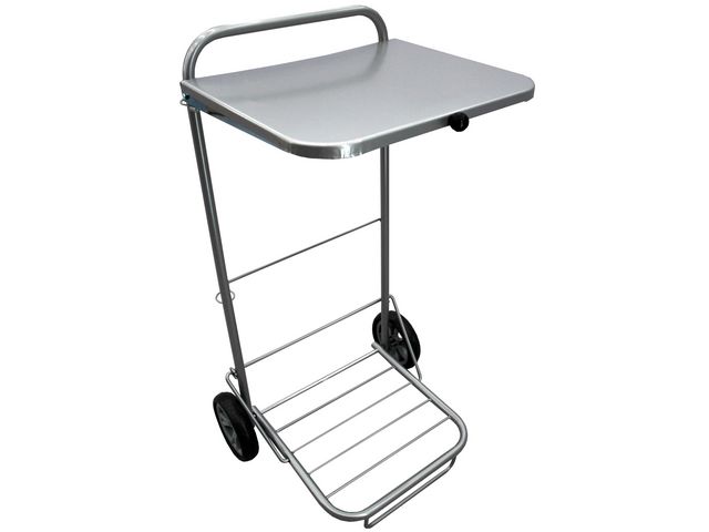 Säckvagn grå med lock med stora lättrullande hjul.