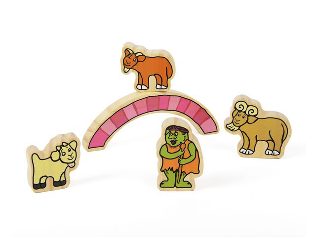Tillverkad av FSC-furu, varje figur har en 15 mm platt bas som gör dem robusta och lätta att ställa upp i en mängd olika berättarmiljöer. Dessa ljusa och inbjudande träkaraktärer från berättelsen om Bockarna Bruse gör det möjligt för barn att återvända till berättelsen i självregisserad lek och skapa nya versioner av sina egna under små världsaktiviteter.