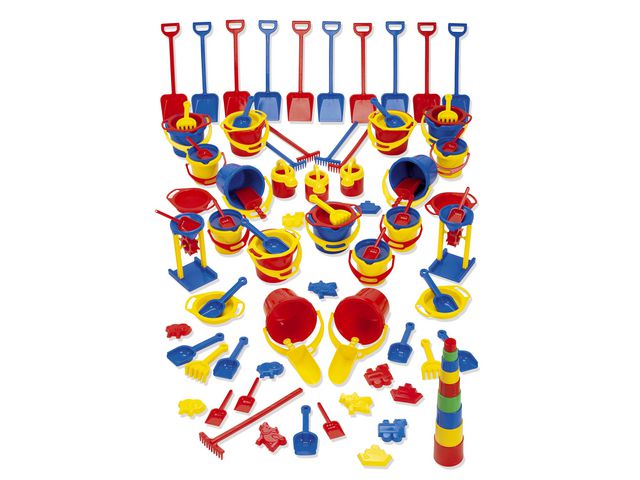 Detta kit innehåller hela 100 olika leksaker som barnen kan bli kreativa med i sandlådan eller på stranden.