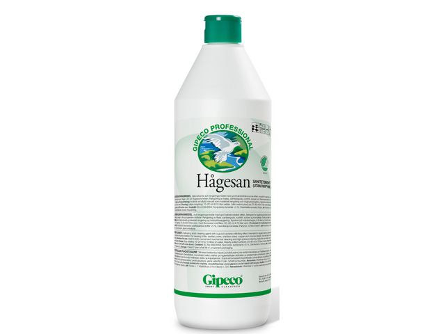 Svanenmärkt surt sanitetsrengöringsmedel med bakteriehämmande effekt.