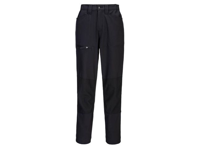 Praktiska dambyxor med fyra smarta fickor som ger god förvaring, utan att tynga ner plagget. Byxan är tillverkad i en återvunnen polyester med sidostretch och 4-vägsstretch som ger god passform och komfort. Med en justerbar fåll och stretchpaneler får du god rörelsefrihet och med praktiska detaljer såsom en dragkedja med lårficka och en slim fit design är du redo för arbetsdagen.