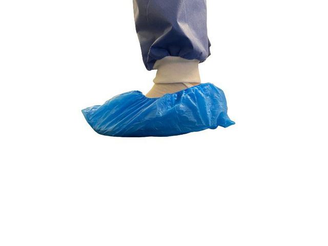 Skoöverdag i lite kraftigare plast för engångsanvändning.