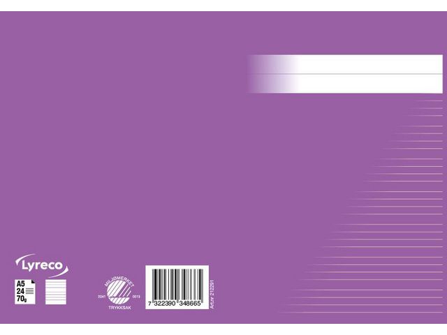 Ett svanenmärkt, linjerat, skrivhäfte med 5+5+5+7mm linjeavstånd. I A5 format.