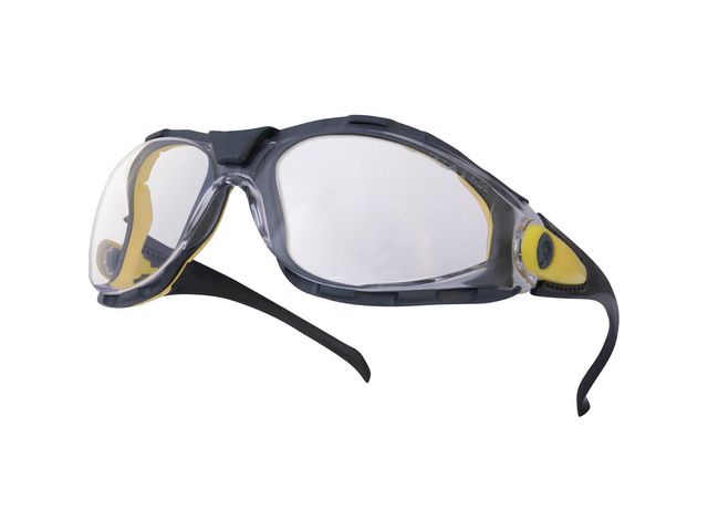 Skyddsglasögon DELTAPLUS PACAYA med klara linser och justerbara bågar. Tätslutande skyddsglasögon med hög brytfasthet.