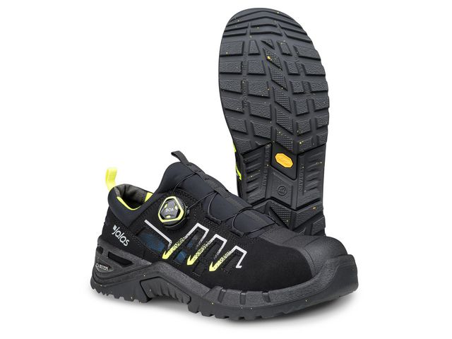 Skyddssko med en ovandel i bio-baserad mikrofiber och ventilationsöppningar i nät för förbättrad andningsförmåga. BOA® Fit System, tillverkat av återvunnet material, är placerat på sidan för att eliminera tryckpunkter. Med aluminiumtåhätta och ett metallfritt spiktrampskydd av återvunnet material ger skon säkert skydd. Dess Vibram® nitrilgummisula, tillverkad av återvunnet material, erbjuder utmärkt grepp och hållbarhet.
