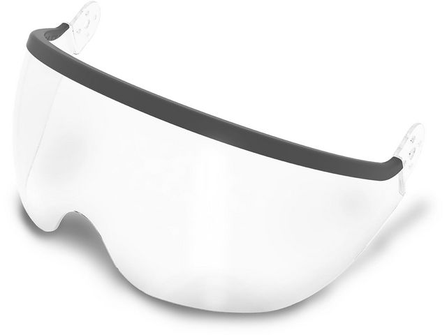 Ett kort visir som ger ett bra skydd mot ögonskador genom ett högkvalitativt material som är certifierat för stötar på upp till 120m/s. Visiret är dessutom reptåligt och behandlat mot imma samtidigt som droppskyddet finns där för att försvåra för regnvatten att droppa ner innanför visiret.