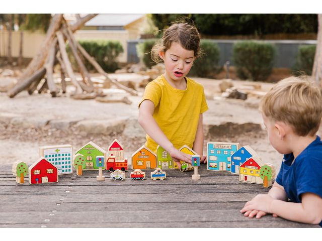 Småstaden uppmuntrar till fantasifull lek och är en fantastisk uppsättning för massor av rollek!
