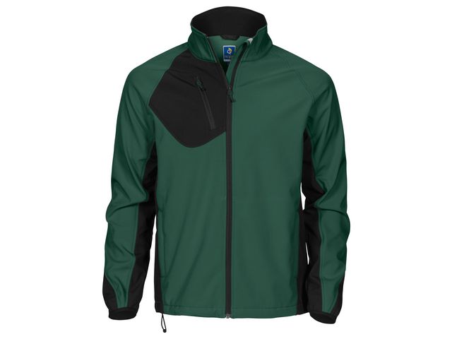 Softshelljacka med bra andningsförmåga. Två sid¿ckor med dragkedja. Bröst¿cka med dragkedja och invändigt fäste för ID-kortshållare. Två inner¿ckor. Hel dragkedja framtill med invändig vindslå för att förhindra vinddrag, samt hakskydd för att förhindra skav mot hakan. Reglerbar med snodd i nederkant.