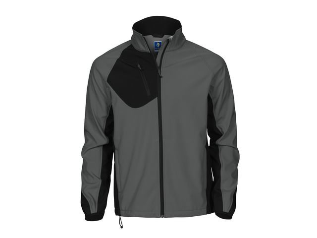 Softshelljacka med bra andningsförmåga. Två sid¿ckor med dragkedja. Bröst¿cka med dragkedja och invändigt fäste för ID-kortshållare. Två inner¿ckor. Hel dragkedja framtill med invändig vindslå för att förhindra vinddrag, samt hakskydd för att förhindra skav mot hakan. Reglerbar med snodd i nederkant.