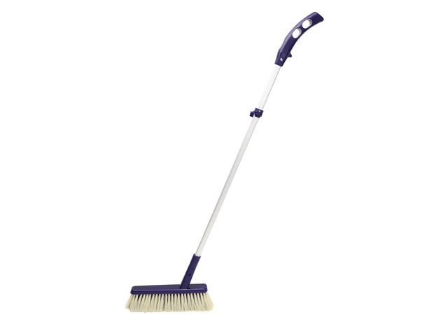 Tät borst av av naturmaterial. Krokar på både skyffel och skaft som underlättar upphängning på t ex städvagnen.