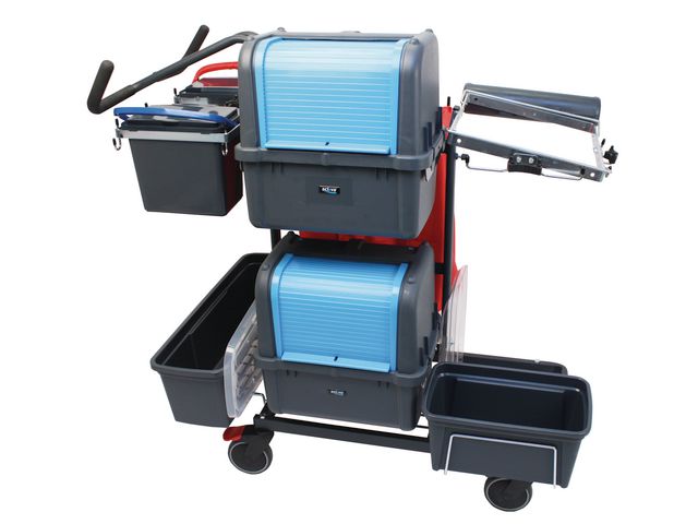 Dubbla Activa xBox - smart och snygg förvaring. Activa RollBox. Smart magnetfäste för lock till moppboxarna. Förbättrad stomme. Moppbox 60 cm och 30 cm. Dubbla 6-litershinkar. Dubbla tvättpåsar. Plats för 4 st stativ och 10 st krokar. Reglerbart handtag och säckhållare. Designade 125 mm hjul och riktningshjul. Tröskelklättrare.