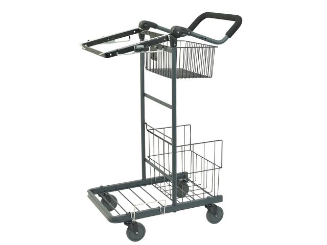 Komplett utrustad med korg, hinkhållare, skafthållare, stativhållare och sopsäckshållare. Leveras med 1-2 st korgar.
