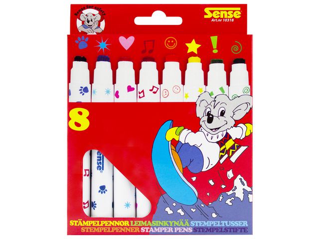 Det här setet med stämpelpennor från Sense® innehåller åtta stämpeldesigner i olika färger som förbättrar alla konstprojekt.