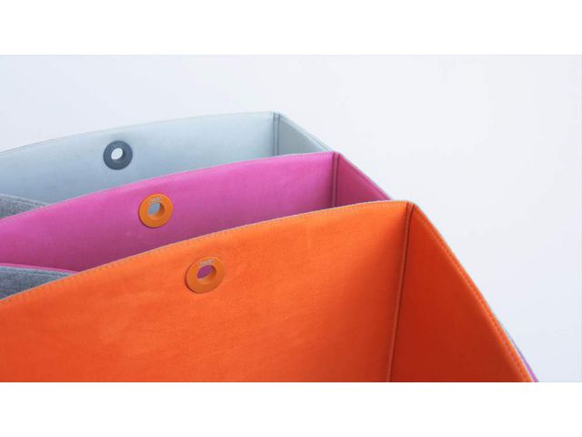 Bordsskärmen är avskärmande och ljuddämpande, med en kärna av stabil, återvinningsbar kanalplast. Den är utvändigt klädd med ett grått, lätt melerat tyg med tuftad look. Invändigt är den klädd med alcantara-liknande tyg och finns i fyra färger. Öljetten gör att du kan hänga upp skärmen då den inte används.