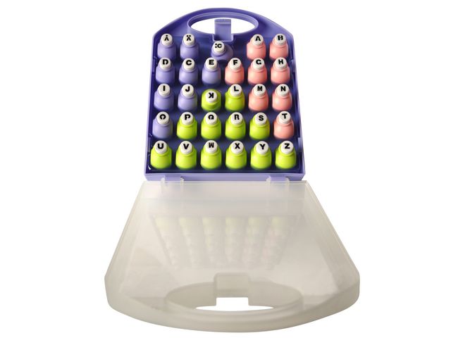 Använd detta stämpelset på kontoret, hemma eller i skolan för att skapa väggkonst eller strukturer på tyger för kreativa förändringar. Detta stämpelset innehåller 30 stämpeldelar av alfabetets A till Ö i versaler. Tryck dem mot kort, väggytor, träblock eller tyger för att skapa konstnärliga meddelanden. Du kan även låta barnen leka med dem och lära sig alfabetet på ett roligt sätt. Dessutom levereras de kompakta stämplarna i en plastlåda.