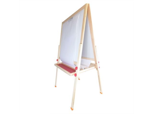 Stadigt, dubbelsidigt ståstaffli med stora whiteboardtavlor 59x59 cm.