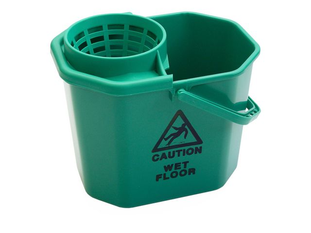 Varje hink är utformad med en praktisk moppurvridare med handpress som gör din rengöring ännu effektivare. Den slimmade hinken är lätt att transportera och förvara, och har ett slitstarkt plasthandtag som förhindrar att ditt grepp glider. Den tåliga konstruktionen är rost- och korrosionstålig samt lätt att hålla ren. Den breda basen och de vinklade sidorna rymmer flera rengöringstillbehör och annat du kan behöva.