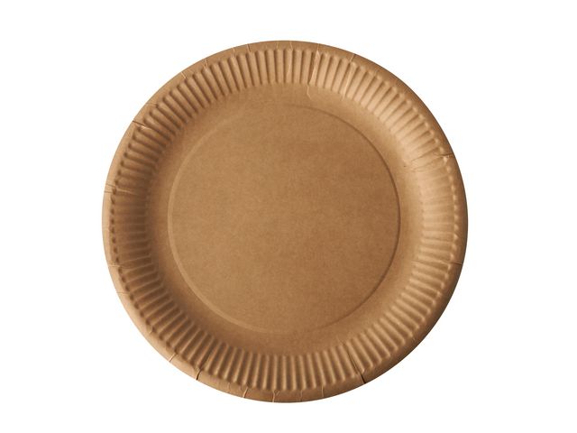 En komposterbar tallrik som är tillverkad på färskfiber från FSC-certifierat trä. Tallriken är helt utan tillsatser från återvunnet material, vilket innebär att tallriken inte har en plastbeläggning på sig. Ett snällare val för naturen och klimatet. Snygg design i brunt papper.