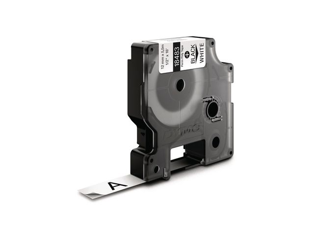 Den permanenta polyesterkassetten DYMO® Rhino på 12 mm matar ut slitstark polyestertejp med svart text på vit botten för industrietiketter som ska hålla länge. Perfekt för inomhus- och utomhusbruk vid märkning av soptunnor, paneler, balkar eller hyllor. Texten på Rhino-etiketter skrivs ut med termisk överföringsteknik – varken bläck eller toner behövs. De är resistenta mot vatten, UV-ljus, kemikalier och olja, och har en stark vidhäftning som är perfekt för industriell användning. De tål temperaturer mellan -40 och 150 grader Celsius. Dra av etikettens skyddsfilm för enkel applicering.